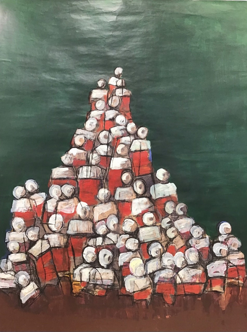 The painting is closer to realistic mental attitude that remind us about material that measures the guarantee or insurance of our places in the heaven where we die.