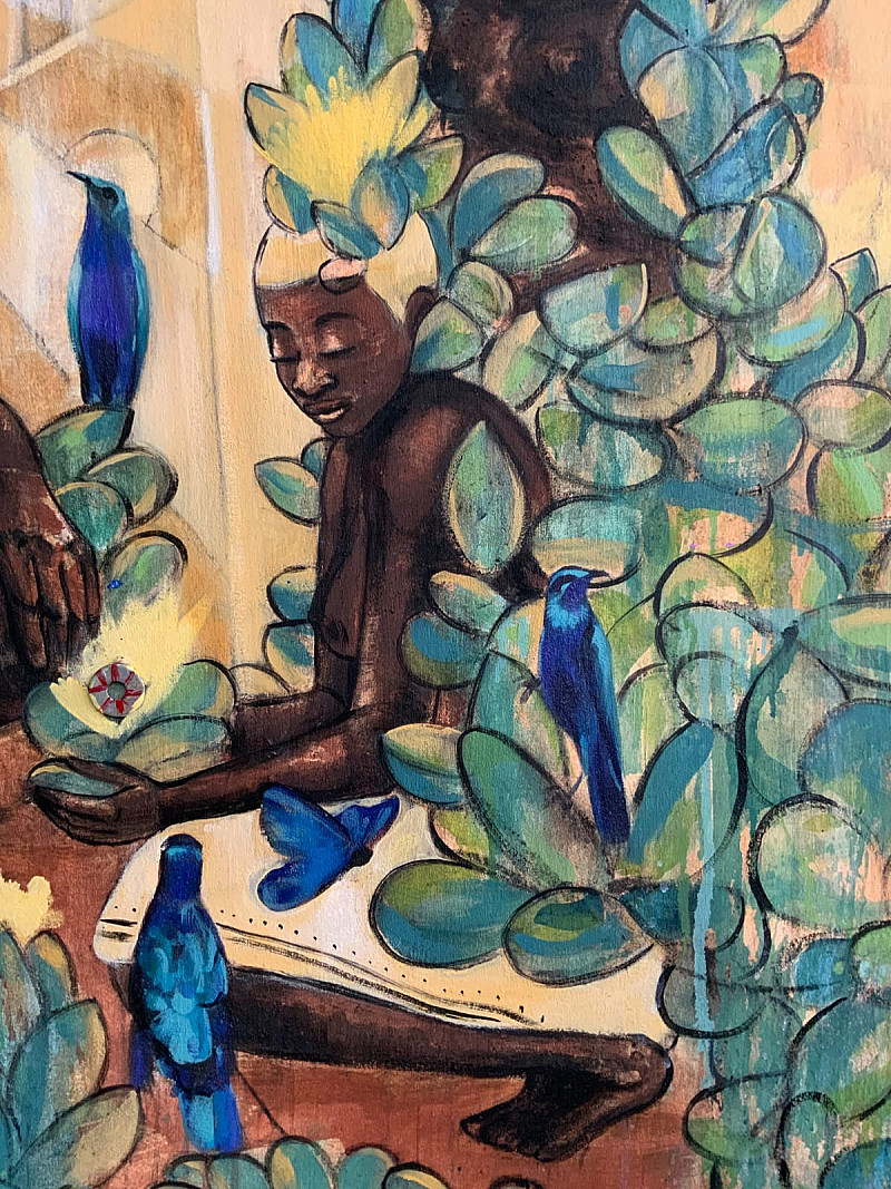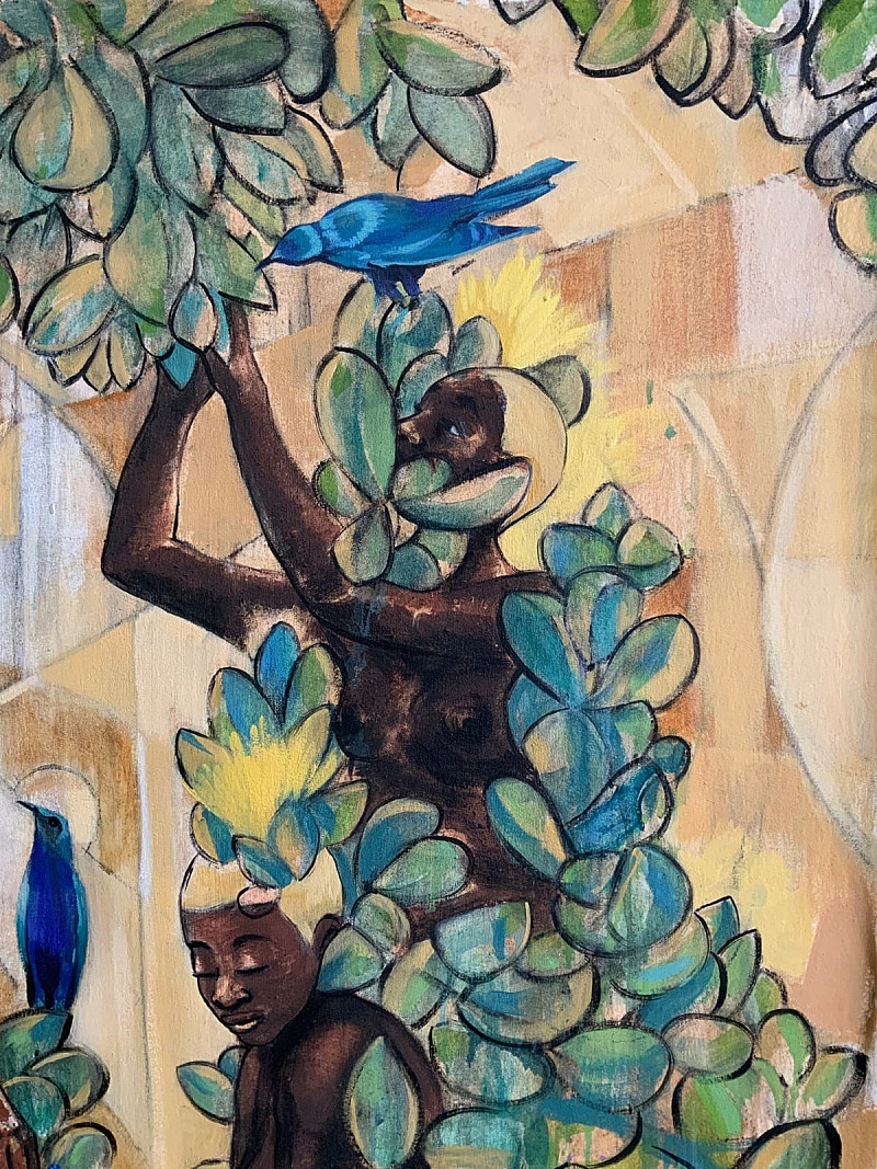 Acrylic, Charcoal, Turmeric and clay on canvas