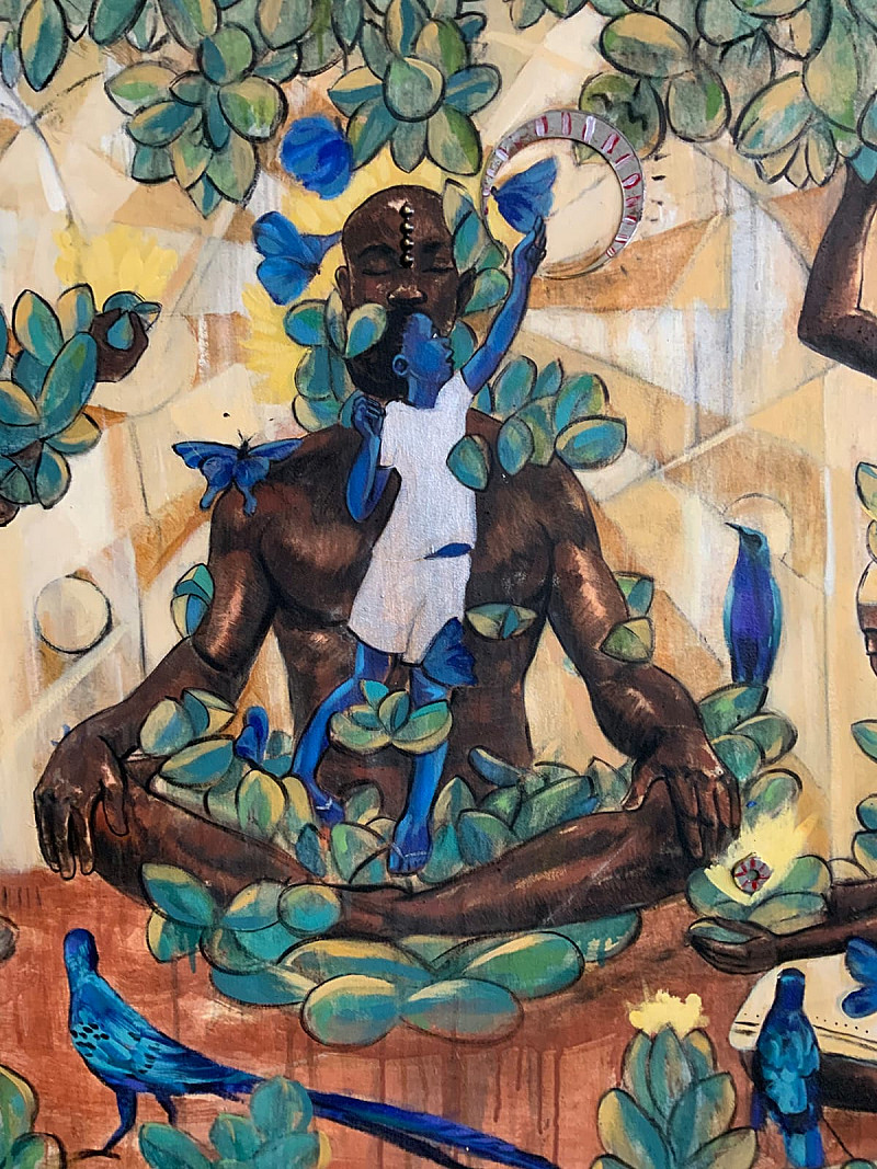 , Mark Antony Modimola , Acrylic, Charcoal, Turmeric and clay on canvas